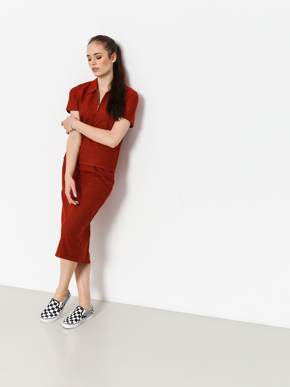 Részletek -Stussy Faye S Sl Zip Collar Wmn Pólóing - narancssárga (orange)