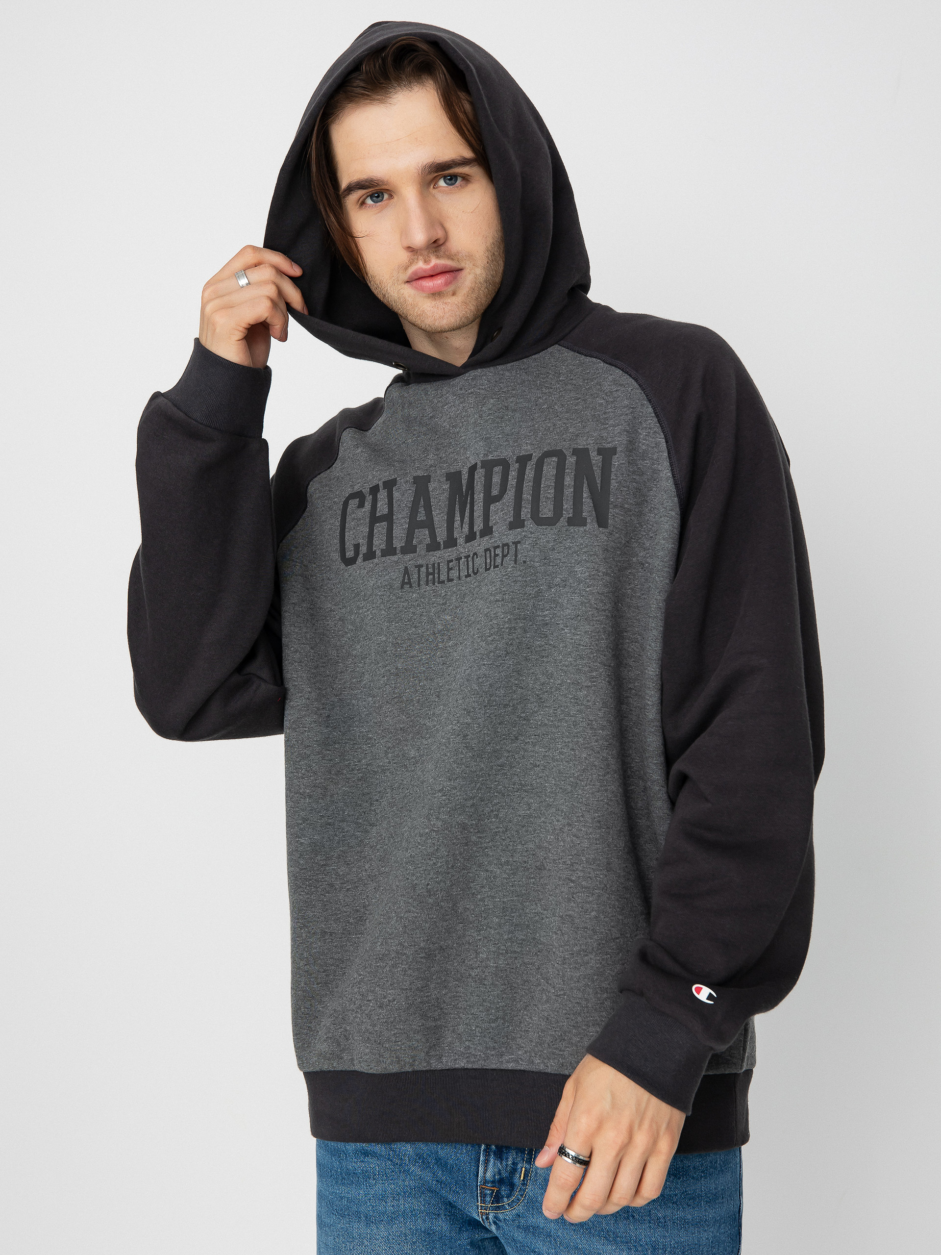 Részletek -Champion Legacy Hooded Sweatshirt 219169 HD Kapucnis pulóver - szürke (gahm/chr)
