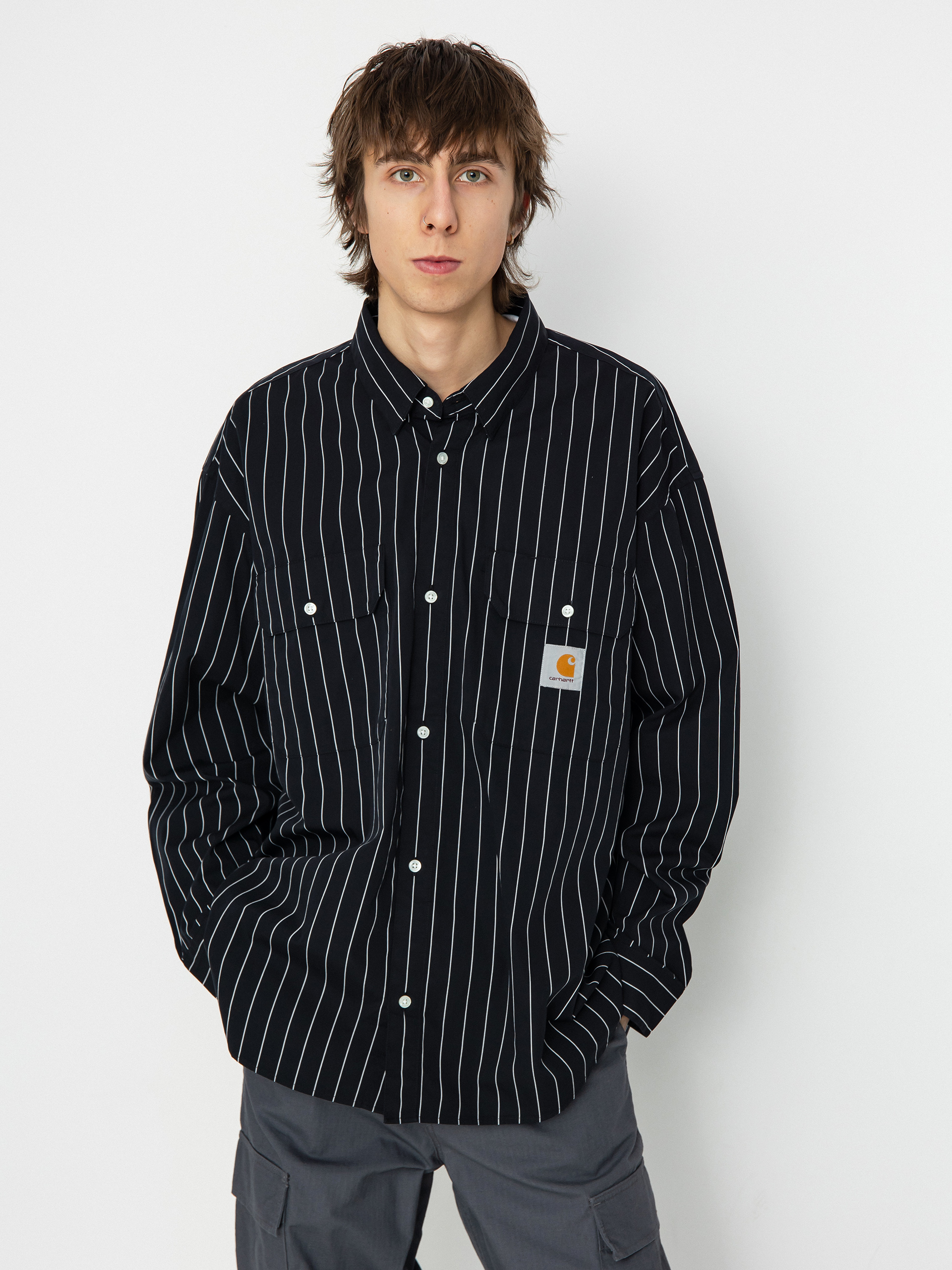 Részletek -Carhartt WIP Orlean Ing - fekete (orlean stripe/black/white)
