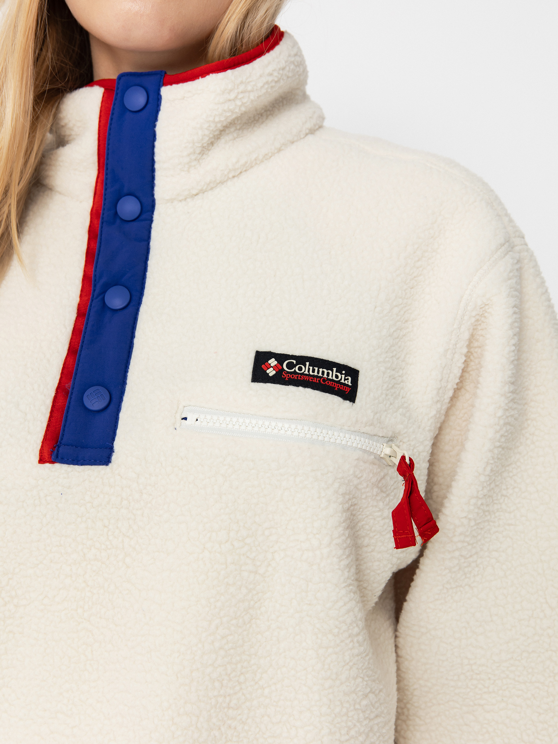 Részletek -Columbia Helvetia II Cropped Half Snap Wmn Polár pulóver - bézs (chalk)