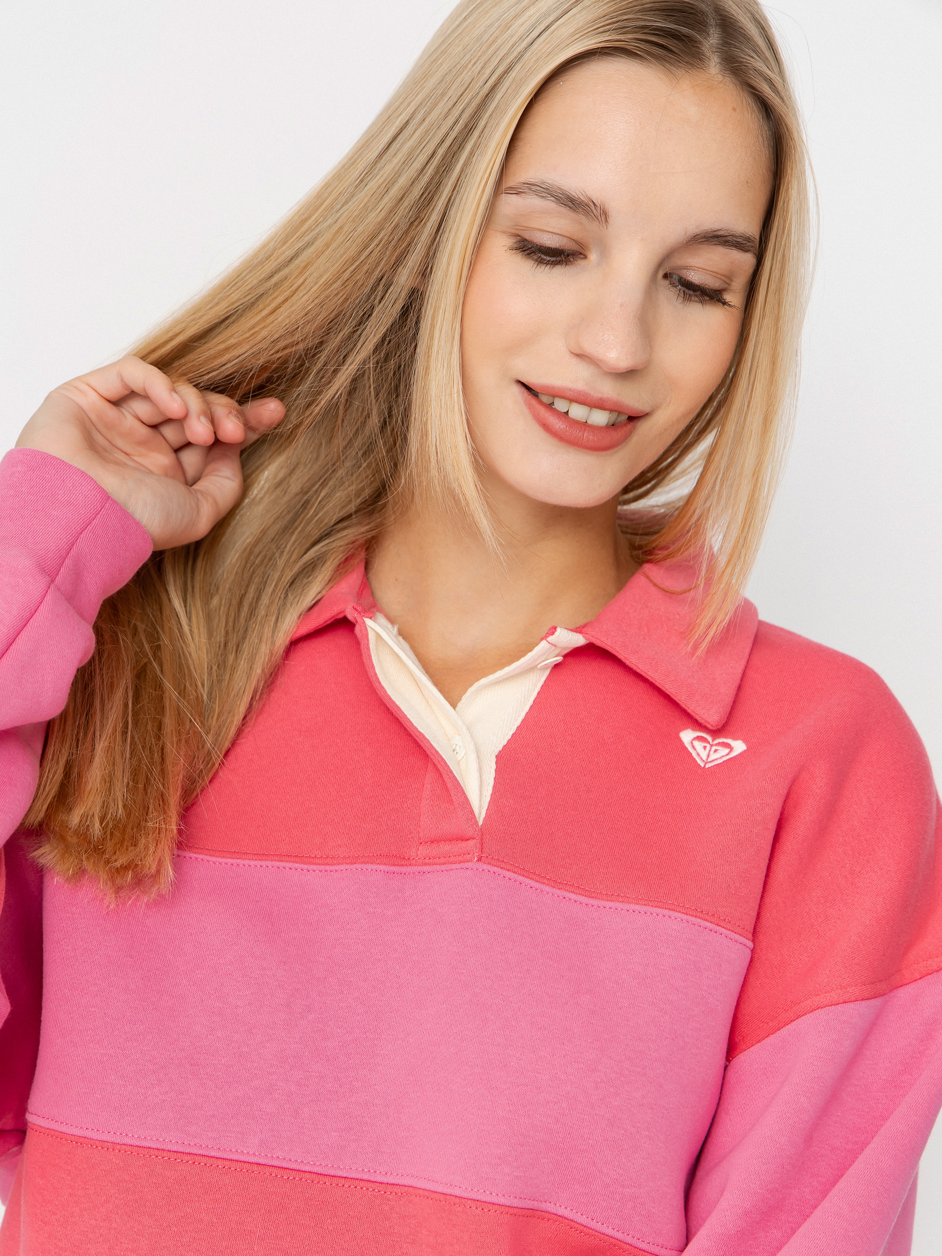 Részletek -Kapucnis pulóver Roxy Cross Your Mind Wmn - rószaszín (honey suckle)