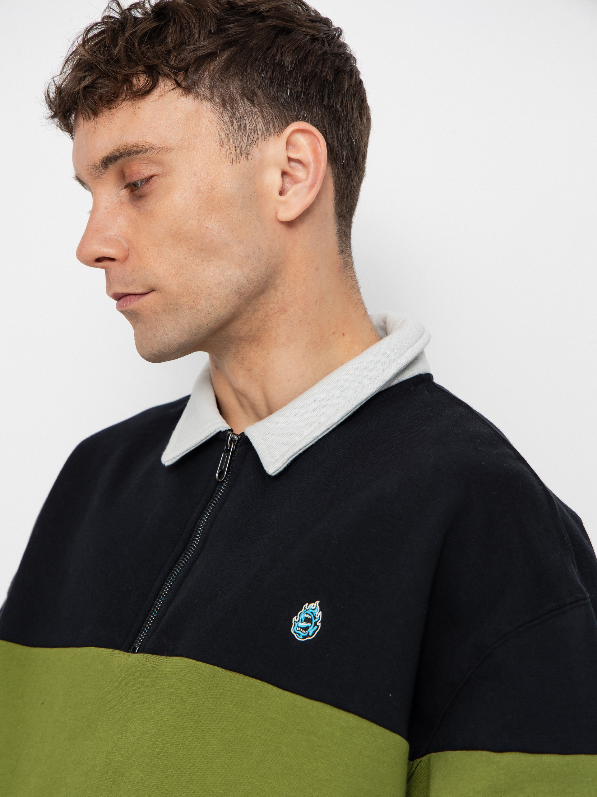 Részletek -Pulóver Santa Cruz Screaming Mini Flame 1/4 Zip - fekete, zöld (black)